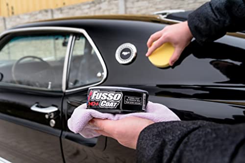detailmate Soft99 New Fusso Coat 12 Months Wax Dark Hartwachs Autowachs, Lackversiegelung, 200 gr für dunkle Lacke schwarz + langfloriges Mikrofaser Poliertuch + Polierschwamm + 2 Nitril-Handschuhe – 4