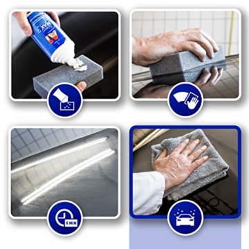 Verbesserter Schutz bis zu 6 Monate und beeindruckender Hochglanz Die weiterentwickelte Carnauba Booster Technologie mit der neu entwickelten Hydrophobie-Formel hebt die Eigenschaften des A1 Speed Wax Plus 3 auf ein noch höheres Niveau. Eigenschaften: Verbesserter Schutz vor Witterungs- und Umwelteinflüssen durch die optimierte CARNAUBA-BOOSTER-Technologie Durch die neue Hydrophobie-Formel hält der Wasser-Abperl-Effekt extrem lange bis zu 6 Monate Erzeugt auf einfachste Weise einen langanhaltenden Hochglanz Verleiht der Lackoberfläche eine geschmeidig samtige Glätte Unvergleichlich schnelle und mühelose Verarbeitung ohne Streifen und Wolken Das Abwischen der Produktüberschüsse ist kinderleicht (wie Staubwischen) Ideal für alle Lackarten (Metallic-, Bunt-, Nano- und kratzfestere Lacke) und Glanzfolien Anzuwenden auf allen neuwertigen bzw. mit Politur aufbereiteten Lacken Lösemittelfrei – Inhalt: