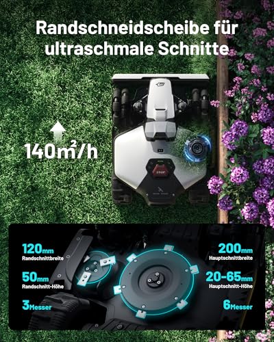 MAMMOTION LUBA Mini 2 AWD 1000 Mähroboter ohne Begrenzungskabel, Empf.1000㎡ Tri-Kamera-AI-Vision & NetRTK-Positionierung, Auto-Mapping, DropMow-Modus, 80% Steigung, Schnitthöhe 20-65mm, 10 Multi-Zonen - 4